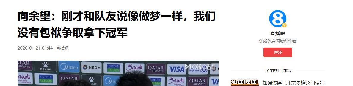 预选赛错失良机后,向余望曾承受了巨大的舆论压力,甚至背负骂名。